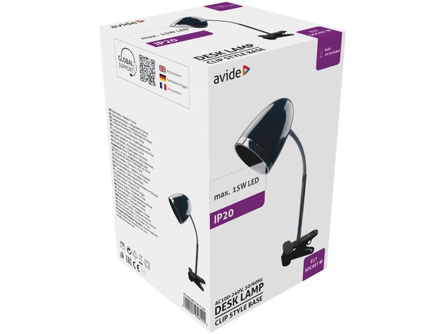 Avide Basic Asztali Lámpa Csíptethető Fekete E27 max.15W